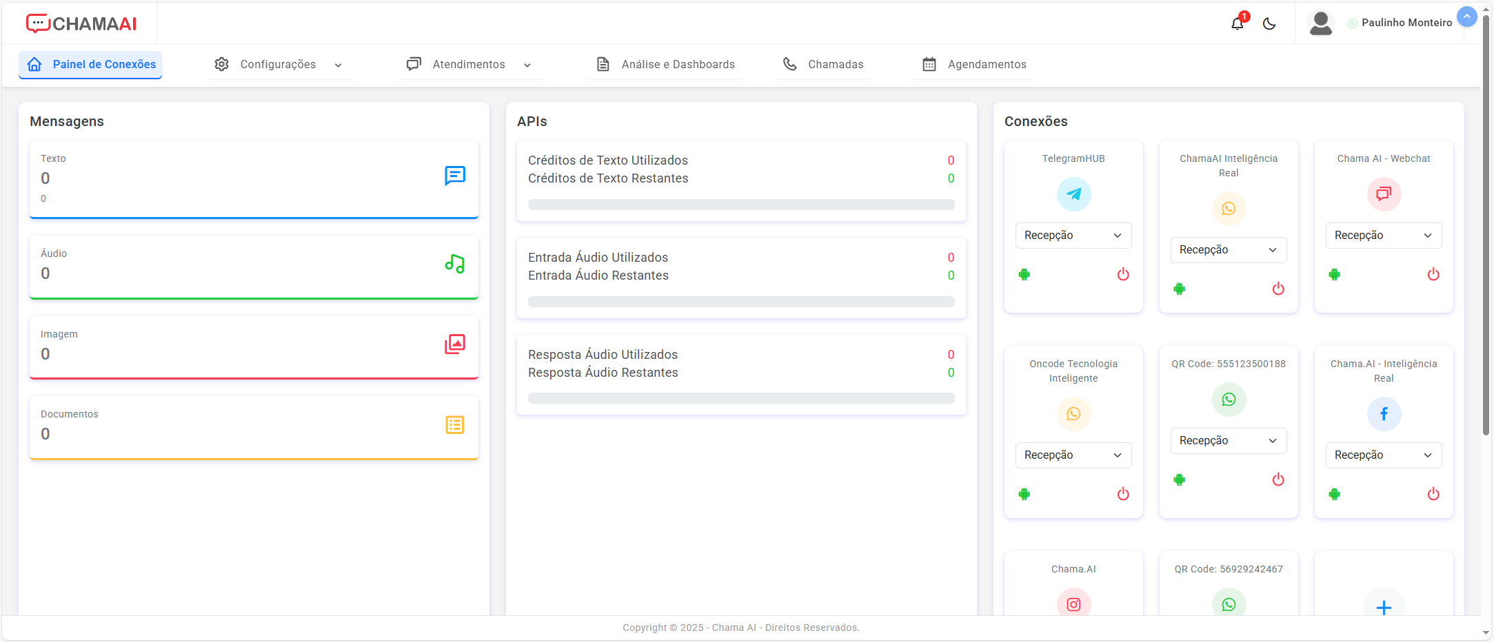 O Chama AI pode atender conversas de WhatsApp, Telegram, Instagram Direct, Facebook Messenger e telefone. A integração com todos esses canais permite que a empresa não perca nenhuma oportunidade de contato, entregando respostas rápidas em qualquer plataforma que o cliente escolher.